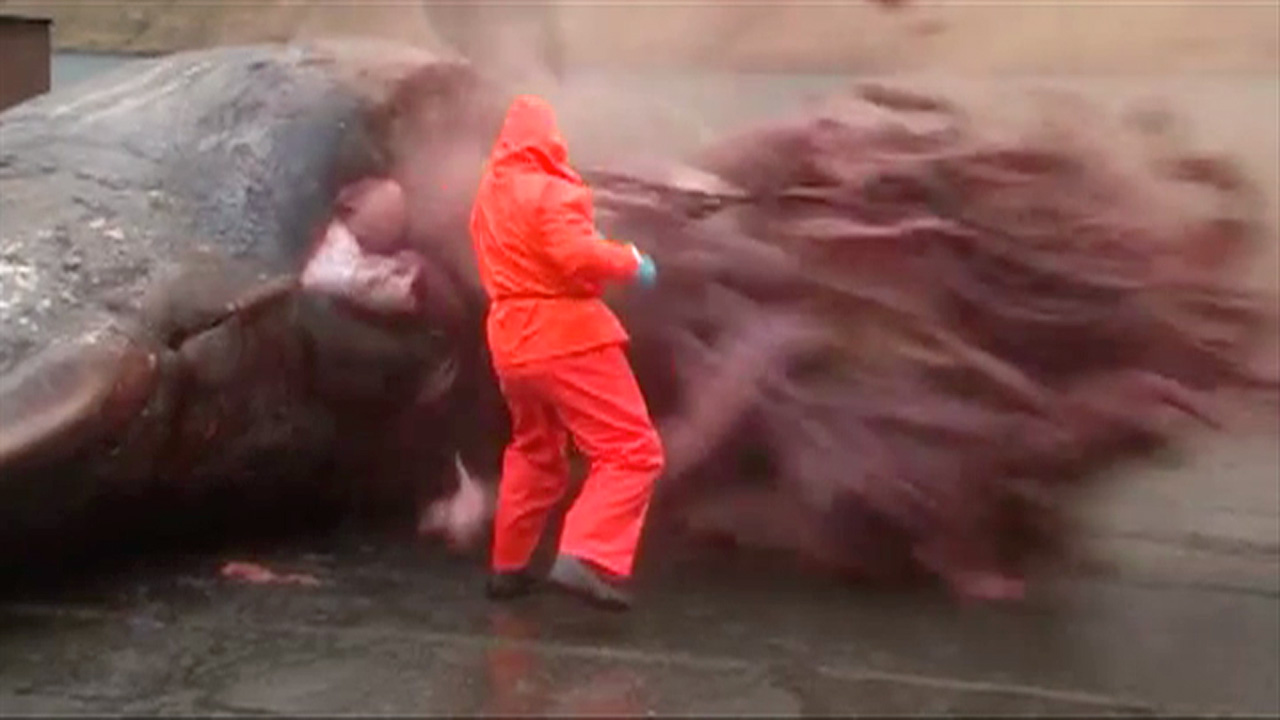 Sperm whale explodes as man tries to open stomach - video | World news | The ...